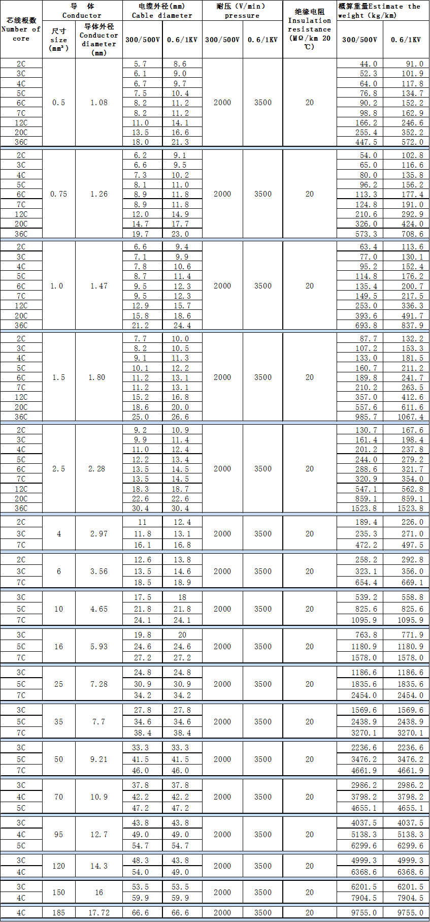- · 柔性PVC非屏蔽控制電纜? CLASSIC? YY
