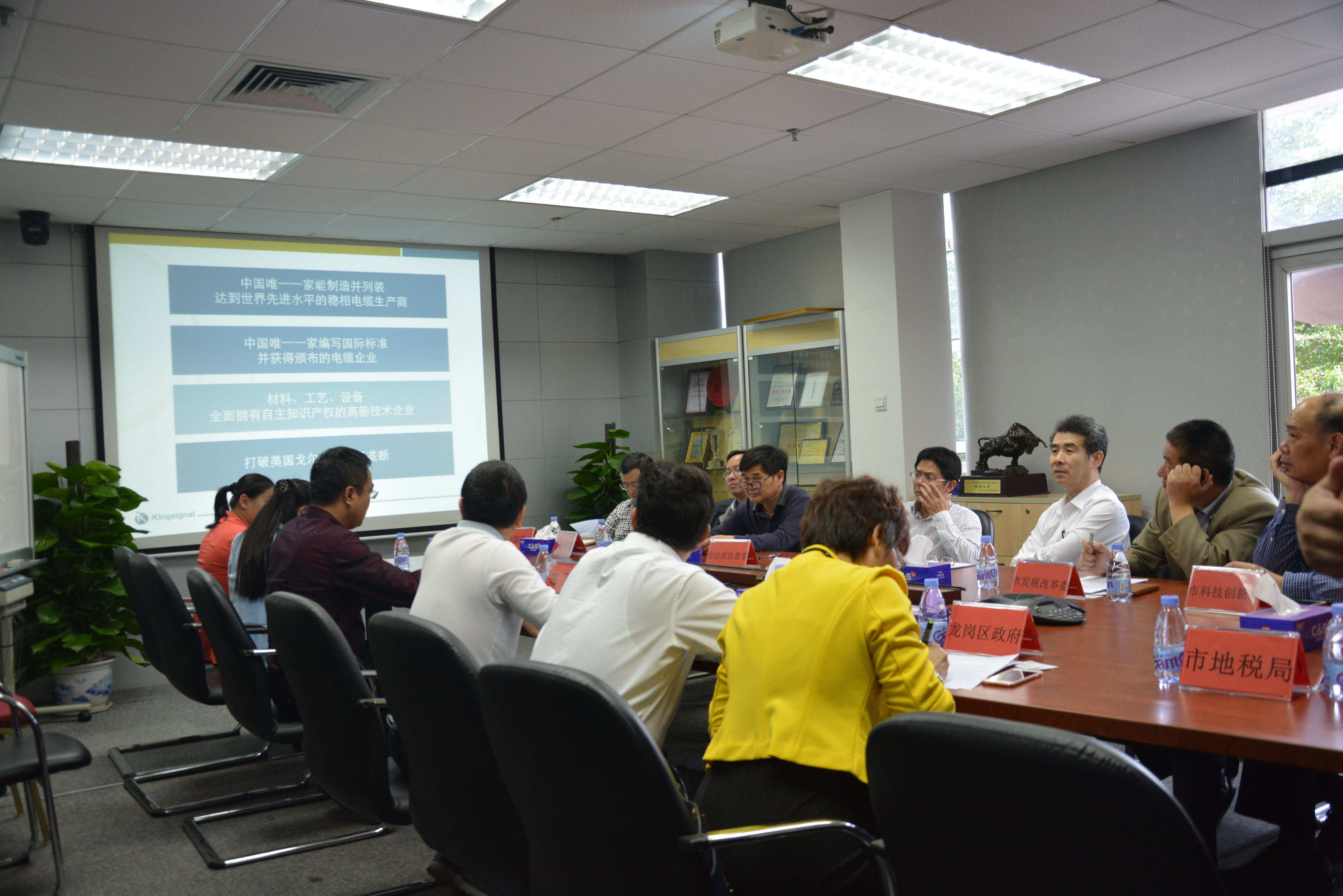 2015年11月2日下午2點(diǎn),深圳市劉慶生副市長(cháng)攜市發(fā)展改革委儲懷濤處長(cháng)、市經(jīng)貿信息委董韋華副處長(cháng)、市科技創(chuàng )新委徐曉峰處長(cháng)、市教育局黎勇主任、市金融辦林志鍇副處長(cháng)、市國資委李春亞副處長(cháng)、市住房建設局馬道之處長(cháng)、市地稅局楊龍副處長(cháng)、南山區政府王東副處長(cháng)、龍崗區政府馮艷虹副處長(cháng)、市人力資源保障局和市規劃國土委一行人來(lái)深圳金信諾高新技術(shù)股份有限公司進(jìn)行掛點(diǎn)服務(wù)。主要了解一下金信諾集團情況,也就金信諾集團現階段遇到的一些問(wèn)題進(jìn)行答疑解惑,金信諾集團董事長(cháng)黃昌華先生、金信諾集團總經(jīng)理鄭軍先生、金信諾集團董秘兼戰略發(fā)展部總監伍婧娉女士、金信諾集團總經(jīng)辦主任趙瑩瑩女士、金信諾集團財務(wù)主管羅端麗女士等人進(jìn)行了接待。