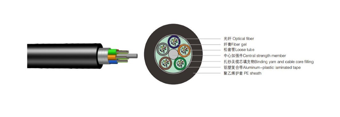 • 護套可用低煙無(wú)鹵阻燃材料生產(chǎn)(此時(shí)光纜型號為GYTZA)。