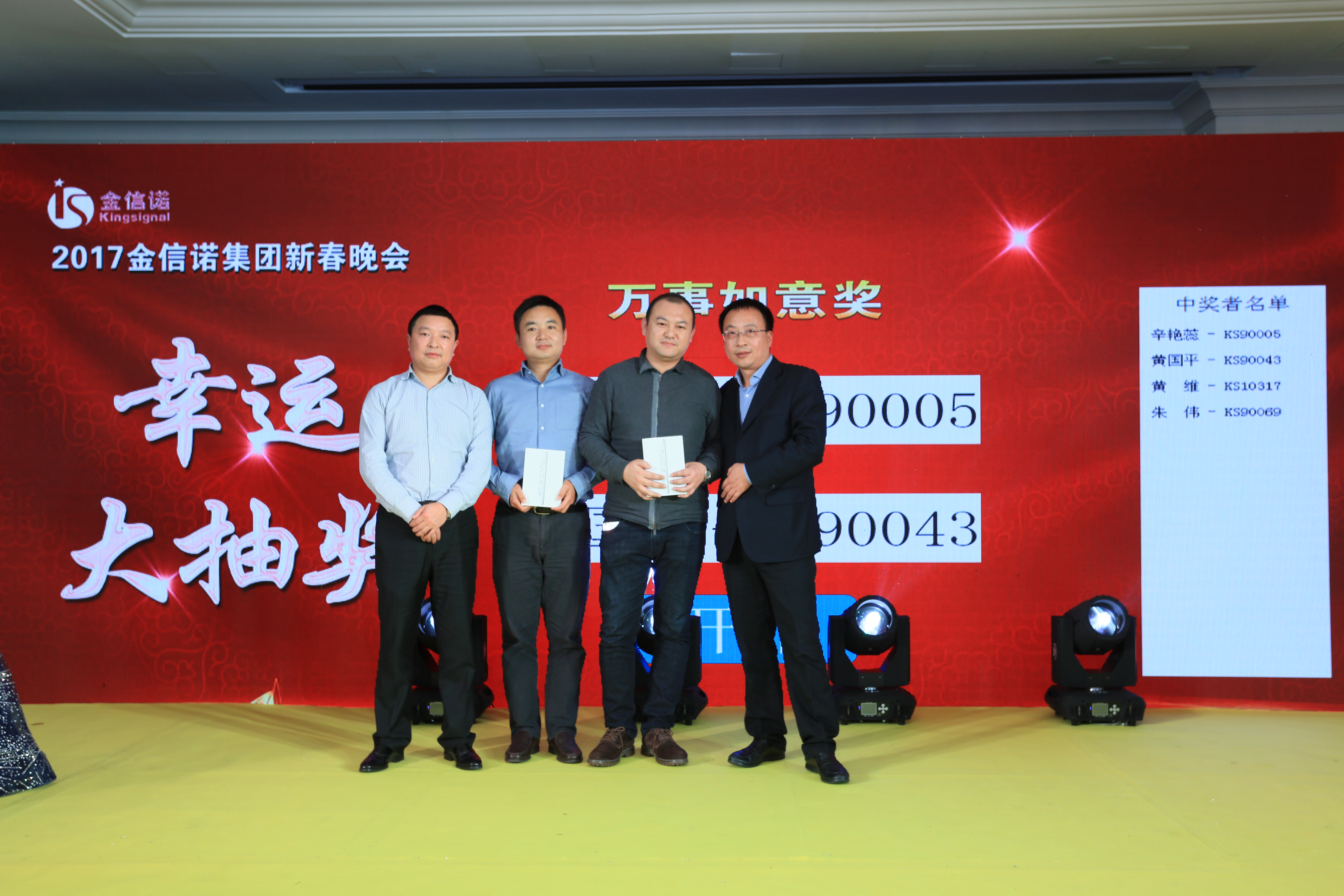 然后是龍崗工廠(chǎng)廠(chǎng)長(cháng)李軍和贛州金信諾總經(jīng)理桂宏兵為我們抽取了四名獲得三等獎的同事,將這份幸運分享傳遞給了吳江平、鄭晶晶、王浩和謝青。抽獎環(huán)節和表演環(huán)節的穿插進(jìn)行,讓大家在欣賞精彩表演的同時(shí)還能期待幸運。
