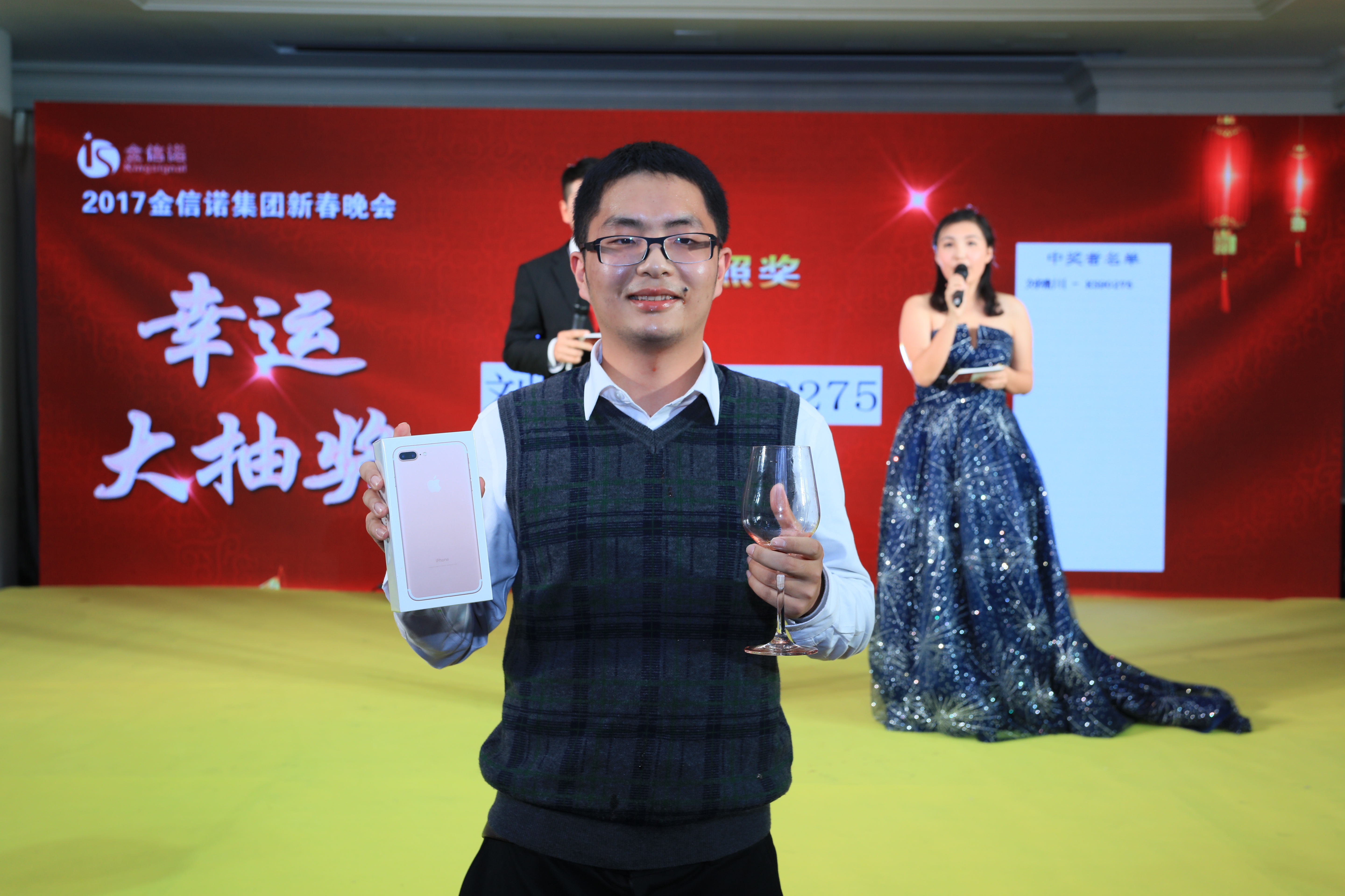 終于到了終極大獎的揭曉了,而抽獎嘉賓黃董事長(cháng)采取了全場(chǎng)倒計時(shí)共同揭曉特等獎的形式,全場(chǎng)起立高舉酒杯,倒數十聲,最終畫(huà)面定格在戰略發(fā)展部的劉嘯川,靦腆內向的嘯川也是剛加入金信諾不久的新鮮血液,相信未來(lái)也能在這個(gè)沒(méi)有天花板的舞臺大展宏圖。
