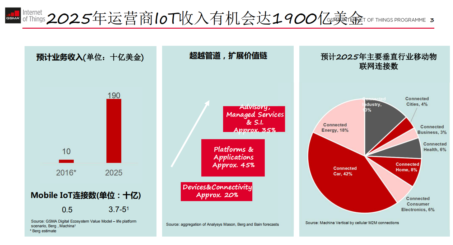 圖:2025年全球運營(yíng)商物聯(lián)網(wǎng)收入有望達1900億美元。來(lái)源:GSMA。