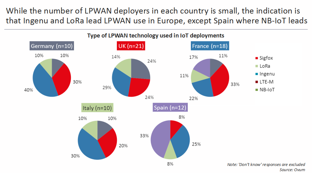 圖:歐洲企業(yè)物聯(lián)網(wǎng)部署LPWAN技術(shù)使用情況。來(lái)源:Ovum。